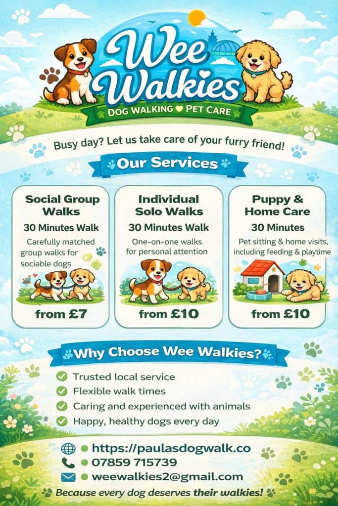 Dog Walking & Pet Sitting in Glasgow (Dog Walker & Pet Sitter)Operates in North KelvinsidePetsitters & DogwalkersPet SittingDog WalkingRequest a quote