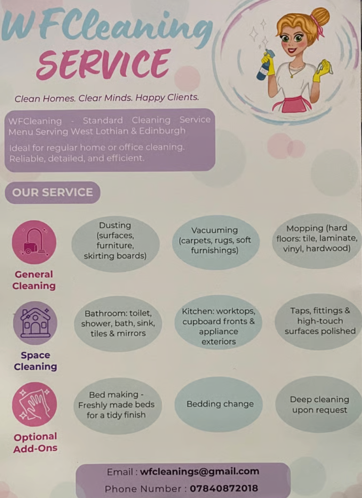 Cleaning services West Lothian & EdinburghOperates in LivingstonDomestic CleaningHouse CleaningEnd of Tenancy CleaningDeep Cleaning ServicesRequest a quote