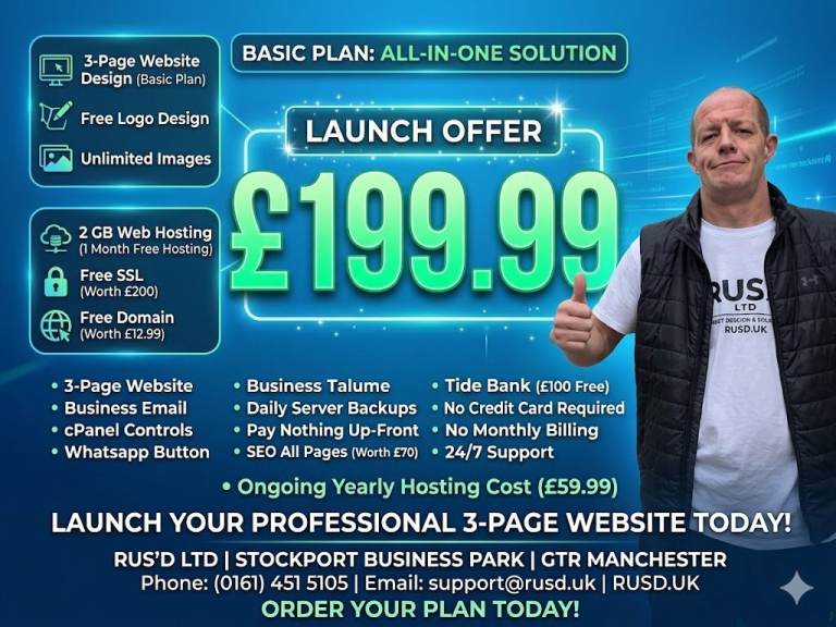 Professional Web Design | 3 Affordable Packages (£199 - £499) | RUSD LTDBusiness VerifiedWebsite DesignReddish, ManchesterWeb DesignWeb DevelopmentDatabase DevelopmentHosting & Cloud Services3 more...Show phone numberRequest a quote