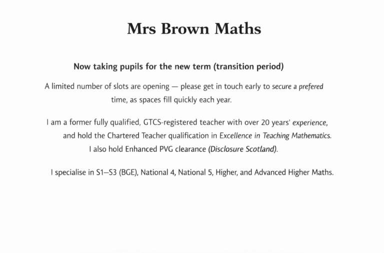 Online Maths Tutor – National 5 & Higher | 1:1 | Small Exam GroupsGlasgow City Centre, GlasgowMathsSecondary Level MathsRequest a quote