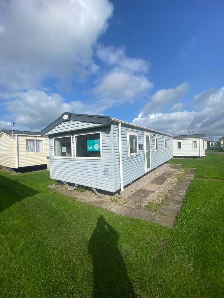 Static Caravan Curtain Set in Herringbone Soft Feel Sky Blue & Mustard Meadows or Home