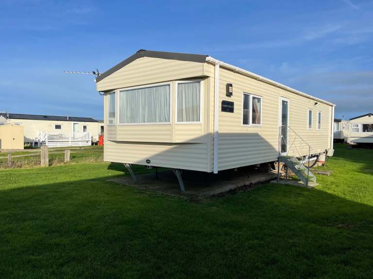 Static Caravan Curtain Set in Herringbone Soft Feel Sky Blue & Mustard Meadows or Home