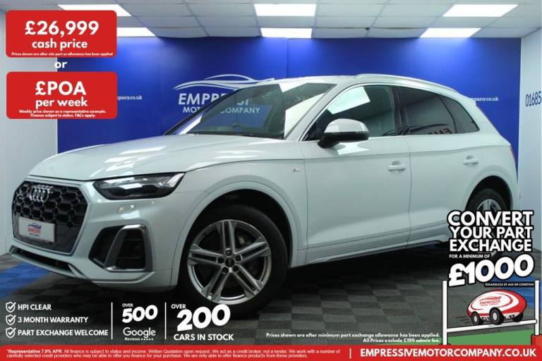482021 Audi Q5 40 TDI Quattro S Line 5dr S Tronic SUV Diesel Automatic202120,295 milesTradeDiesel1,968 ccNewport£27,749Finance from £571 pm