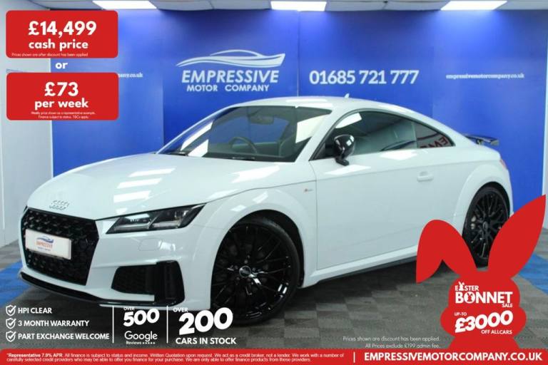 112019 19 AUDI TT 2.0 TFSI 40 BLACK EDITION COUPE 3DR PETROL S TRONIC EURO 6 (S/S)201981,783 milesTradePetrol1,984 ccDowlais, Merthyr Tydfil£14,499Finance from £305 pm