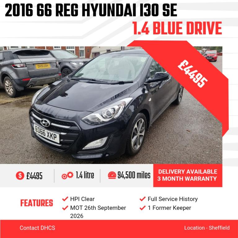 Featured202016 Hyundai i30 1.4 Blue Drive SE 5dr HATCHBACK Petrol Manual201694,500 milesTradePetrol1,368 ccSheffield, South Yorkshire£4,495Finance from £95 pm