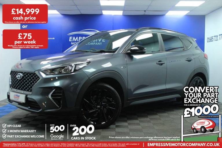132020 20 HYUNDAI TUCSON 1.6 T-GDI N LINE SUV 5DR PETROL MANUAL EURO 6 (S/S) (177 202058,708 milesTradePetrol1,591 ccDowlais, Merthyr Tydfil£14,999Finance from £315 pm