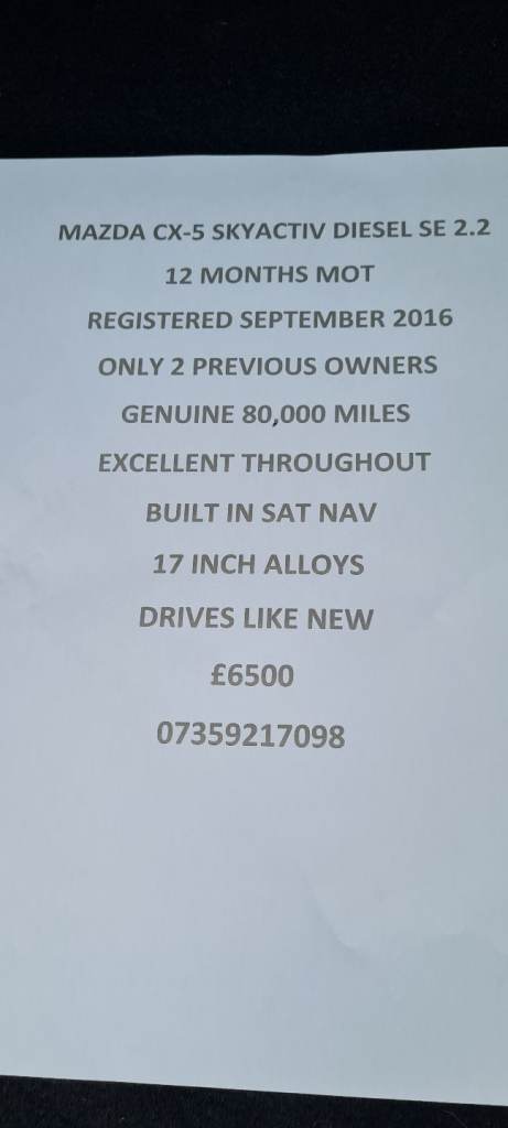 14Mazda CX-5 Diesel – Family SUV – Great Condition2013153,106 milesPrivateDiesel2,191 ccBassaleg, Newport£2,995 (No VAT)