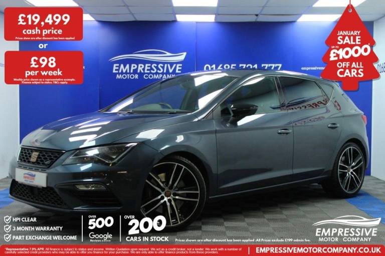 1512019 SEAT Leon 2.0 TSI 290 Cupra [EZ] 5dr DSG HATCHBACK PETROL Automatic201988,462 milesTradePetrol1,984 ccWinsford, Cheshire£13,999Finance from £294 pm