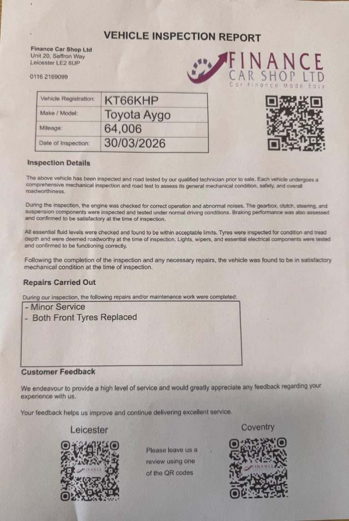12017 Toyota AYGO 1.0 VVT-i X-Play 5dr HATCHBACK PETROL Manual201764,003 milesTradePetrol998 ccLeicester, Leicestershire£5,200Finance from £110 pm