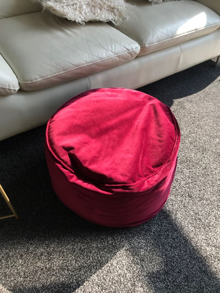Burgundy Corner Sofa and pouffe