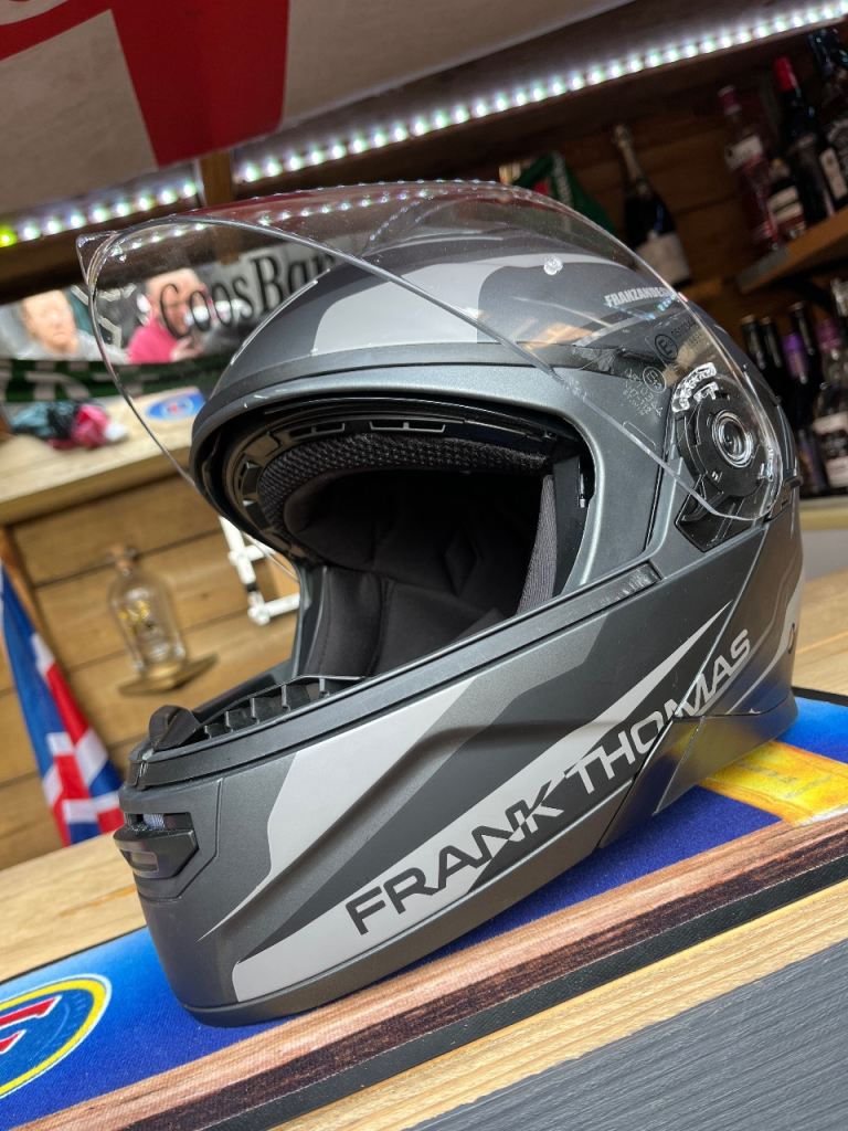 Frank Thomas open/close crash helmet in grey/black. £65