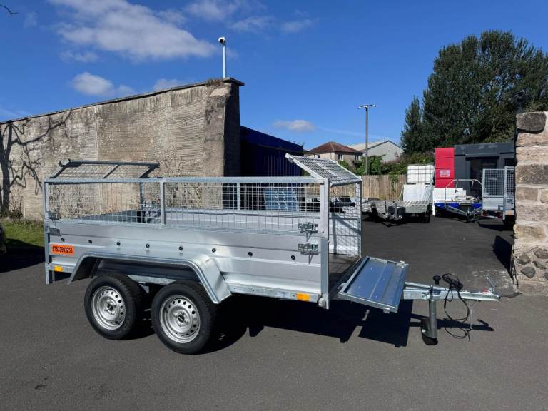 8BRAND NEW 8,7FT X 4,2FT TWIN AXLE DOUBLE BROADSIDE TRAILER WITH RAMP 750KG UN BRAKEDKirkcaldy, Fife£1,640