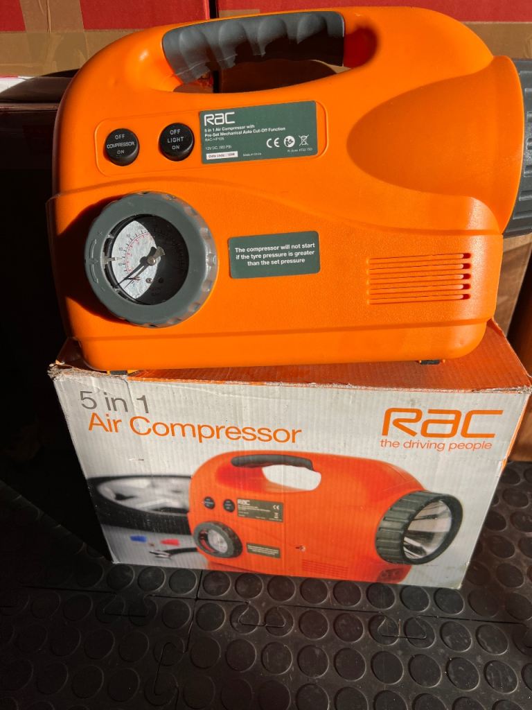 RAC 5 in 1 air compressor / tyre inflator 12v with adaptors