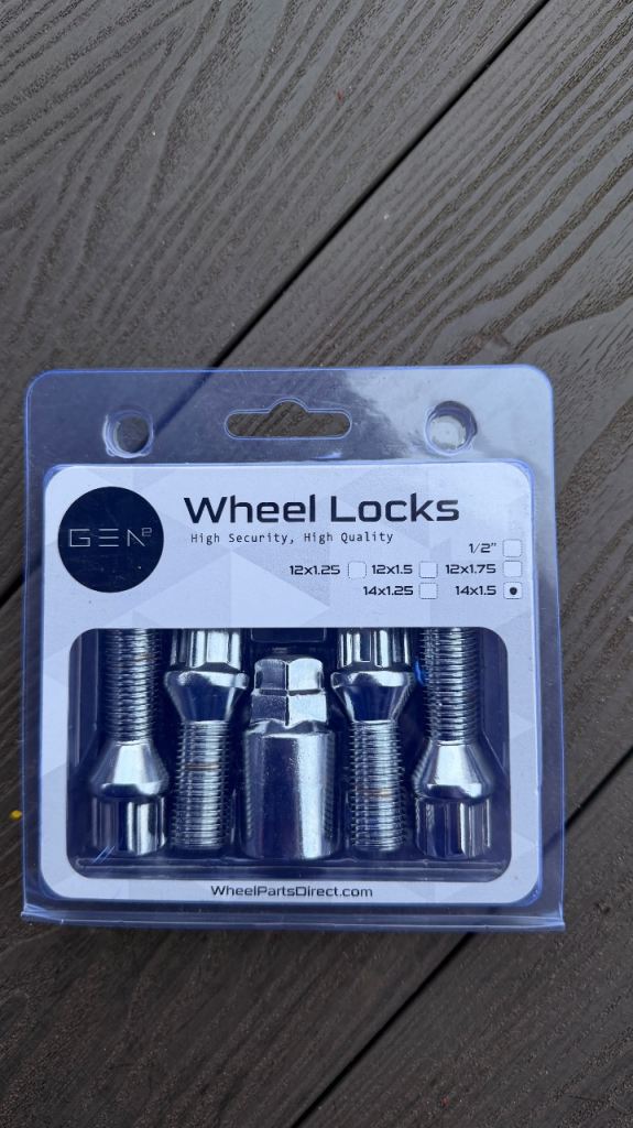 Locking Wheel Nuts/Bolts complete set of 4 + key M14X1.5