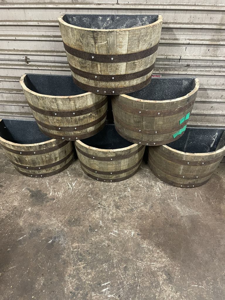 1/4 whiskey barrel planters comes with plastic back and feet. £25 each 1/2 planters £25 each Full barrels from £40 each Xxl 500L barrels £20 Based in Coagh Local deliveries available ask for price Special one offs available Ca