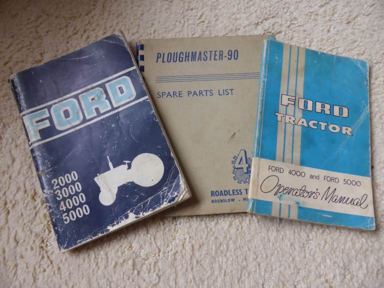 Ford operators hand books for 2000,3000, 4000 and 5000 series and a spare parts list for a Ploughmaster 90 by Roadless traction ltd. These are old books but are clean as in grease free. Cash on collection from Farnham (Weybourne) GU9.