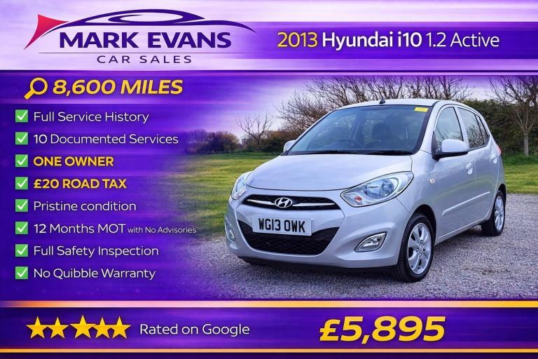 Featured252013 Hyundai i10 1.2 Active 5dr HATCHBACK Petrol Manual20138,600 milesTradePetrol1,248 ccSt Agnes, Cornwall£5,895Finance from £124 pm