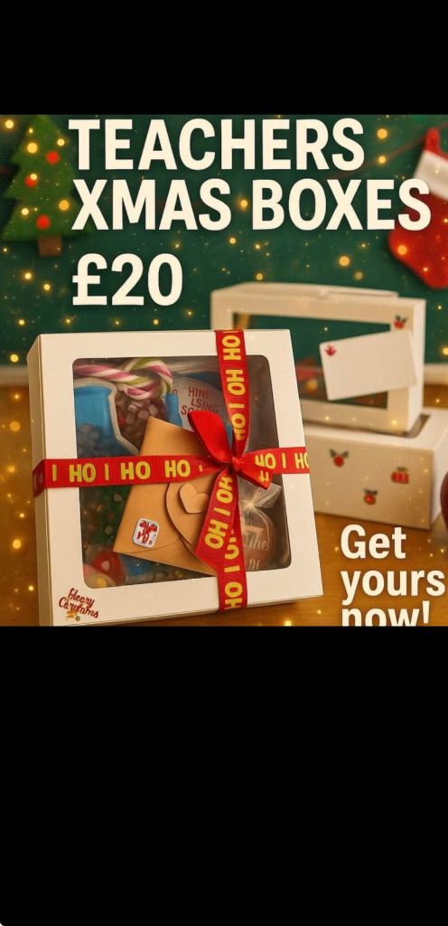 🎄📚 Teachers’ Christmas Boxes – £20! 📚🎄 Give your favourite teacher a festive thank-you they’ll actually love! These handcrafted Christmas boxes are packed with cosy treats, cute surprises, and a whole lot of holiday cheer — all wrapped up in a ch