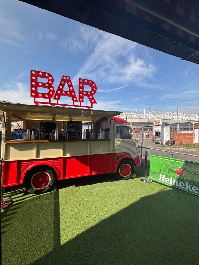 "Unique Mobile Bar Experience! Get the party started with our one-of-a-kind Citroen H-Wagon mobile bar! Fully insured and licensed, our bar is perfect for events, weddings, and festivals. Impress your guests with a retro-chic vibe and en