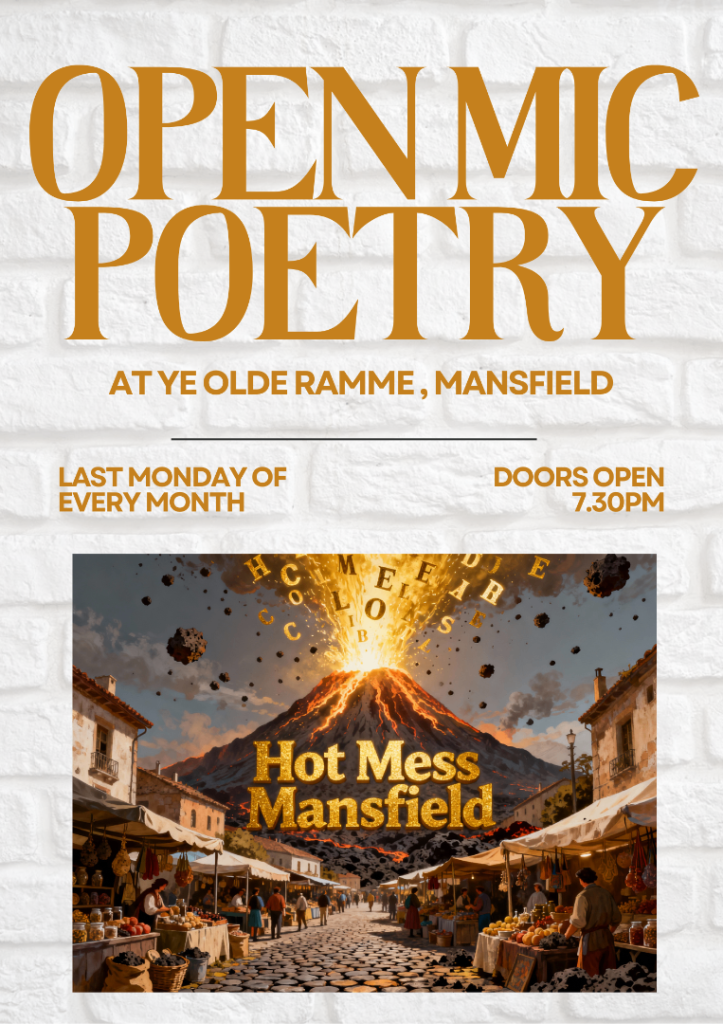 "Hot Mess Mansfield" is a new open mic poetry/spoken word night that takes place on the last Monday of every month at Ye Olde Ramme, Church Street, Mansfield, Nottinghamshire. Either message your host, Cat Clarke (that's me!), to book one of the 5 m