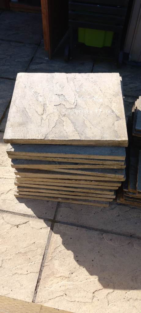 Rivan Buff paving slabs, used (3 years old) and in good condition. Quantity - 12, 600mm x 600mm x 35mm Quantity - 2, 500mm x 600mm x 35mm Buyer collect.