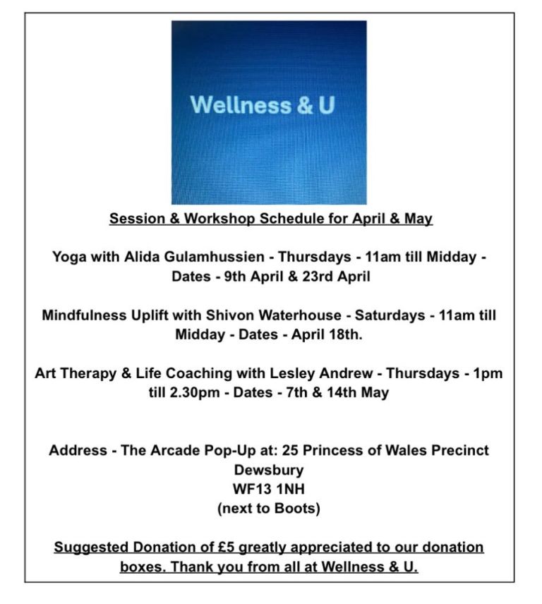 Stay updated on our socials. A volunteer led wellness initiative focusing on your overall health & wellbeing. With sessions and workshops for adults of all abilities. (Donations welcomed - suggested donation of £5 greatly appreciated) Join our onl