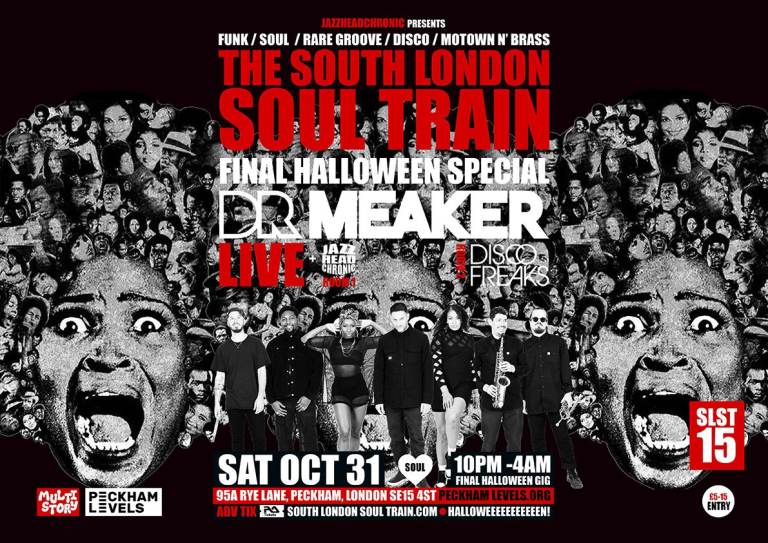 DR MEAKER (LIVE) + MORE IN 2 ROOMS!!!! Sat Oct 31 - The South London Soul Train keeps coming on strong. Your SLST host with the funk, soul, n’ disco slinging most JAZZHEADCHRONIC joined by one of the world's premier soul and bass outfits, the always
