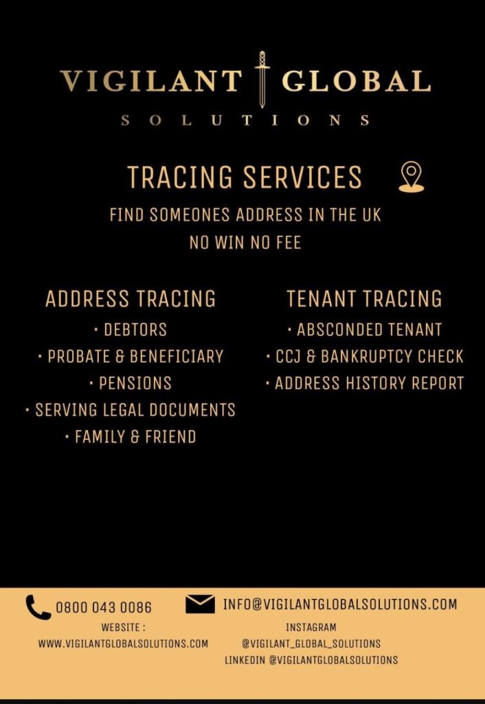 Need to locate someone? We offer a discreet, professional and reliable people tracing service across the UK. Whether you’re trying to reconnect with a family member, find an old friend, trace a debtor, or locate someone for legal reasons, We can h