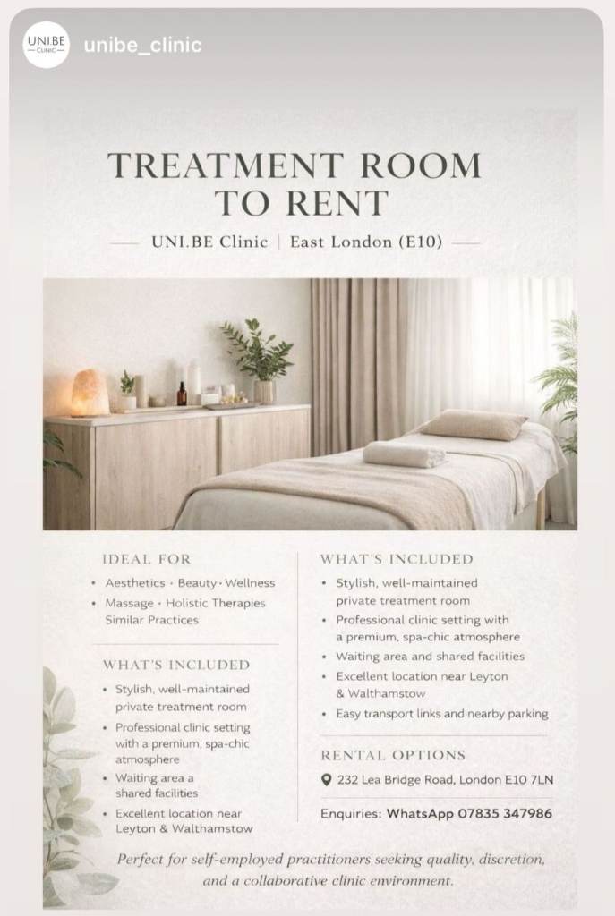 7Luxury Beauty/ Hair style/Treatment Room for rent -Leyton, London : Hassle free rent (negotiable)PrivateDate available: 12 Jan 2026RetailEast London, London£600pm