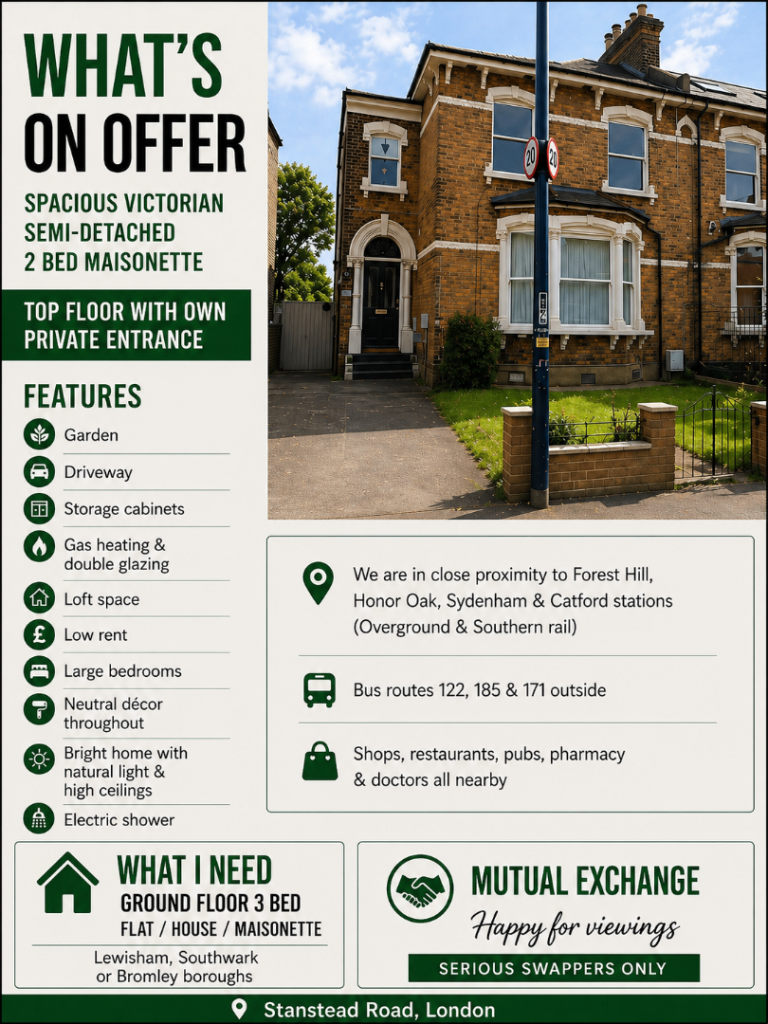 6Urgent : Swap Council flats - Ground swap for Ground floor Victorian Council flatAgencyDate available: 19 May 2026Flat1 BedSutton, London