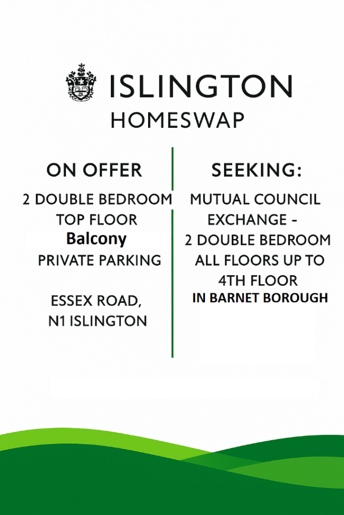1SEEKING 2 BED IN BARNET BOROUGH IN EXCHANGE FOR 2 BED IN ISLINGTON PrivateDate available: 12 Mar 2026Flat2 BedsIslington, London