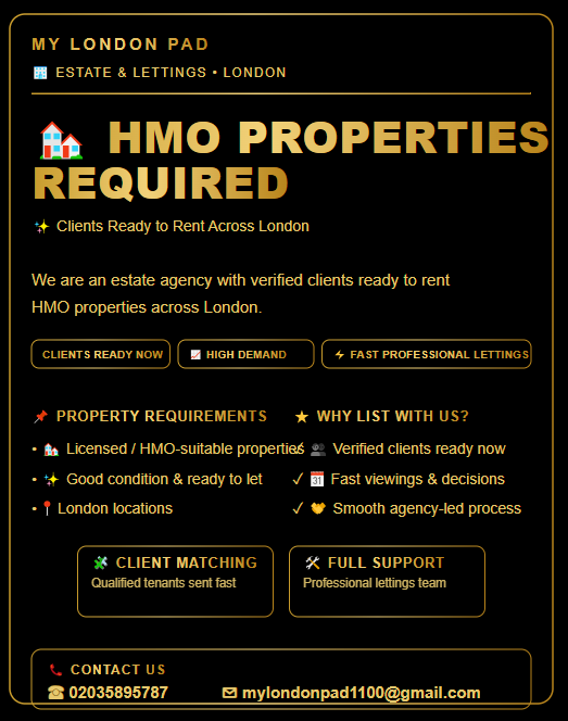 1SOCIAL CARE & HMO PROVIDERS URGENTLY NEEDED – PROPERTIES AVAILABLE NOWAgencyDate available: 17 Nov 2025House5 BedsLambeth, London£0pm