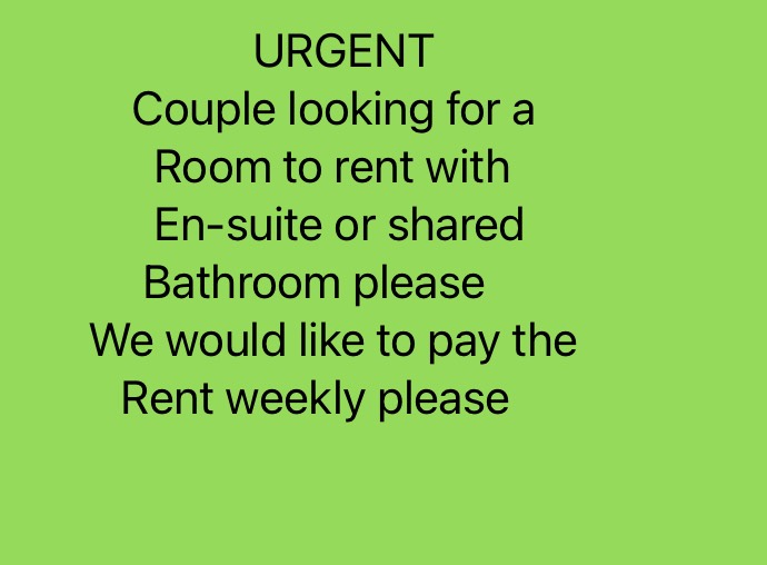 1URGENT - Couple looking for a room to rent or a studio flat to rent please.PrivateUttoxeter, Staffordshire