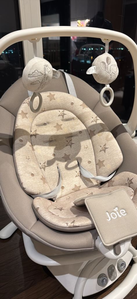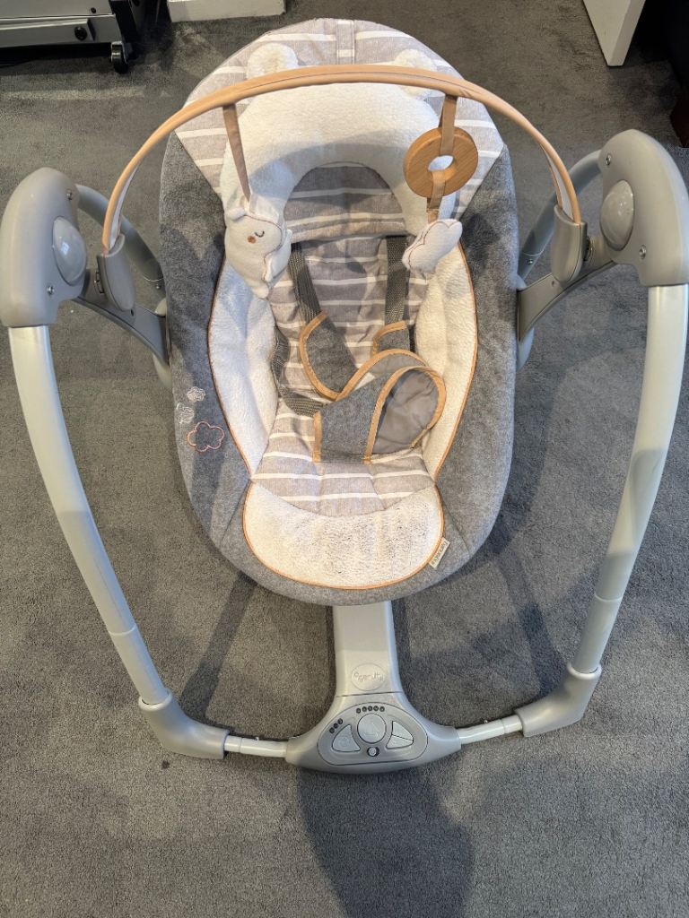 Ingenuity baby swing purchased for £85 No longer needed Buttons for control swing and music Discolouration on bottom padding could be washed off