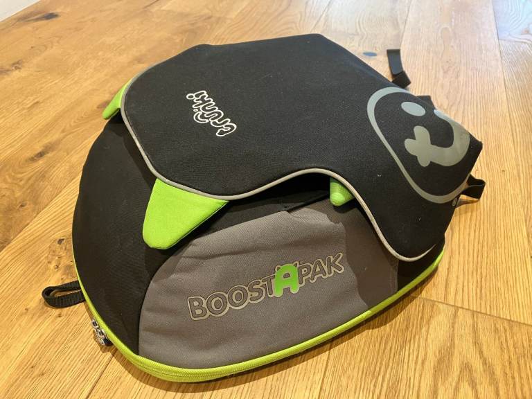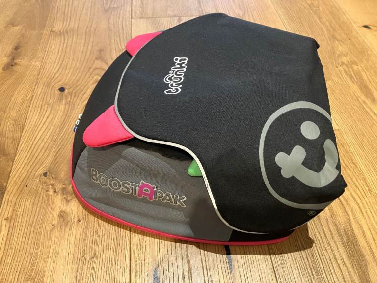 Trunki BoostApak booster seat in pink. Used but still in great condition. These are sturdy and great for taking on holiday as they have back pack straps and a roomy storage compartment where your little one can carry their toys etc. And saves the wor