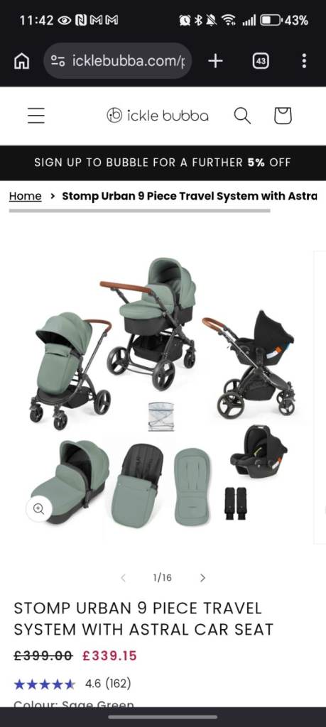 Pram and car seat. Has rain cover and attachments. Turns into pram and pushchair. Car seat also attaches to wheels. Wheels fold down. Signs of use but in good condition. Collection only
