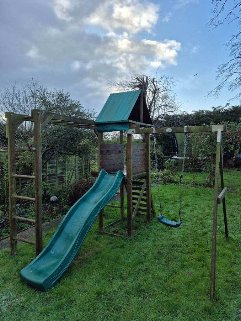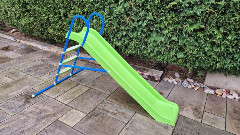 Chad Valley 7ft Garden slide. Can fit hose to make into a water slide. Approx size: L 220cm x H 130cm x W 130cm