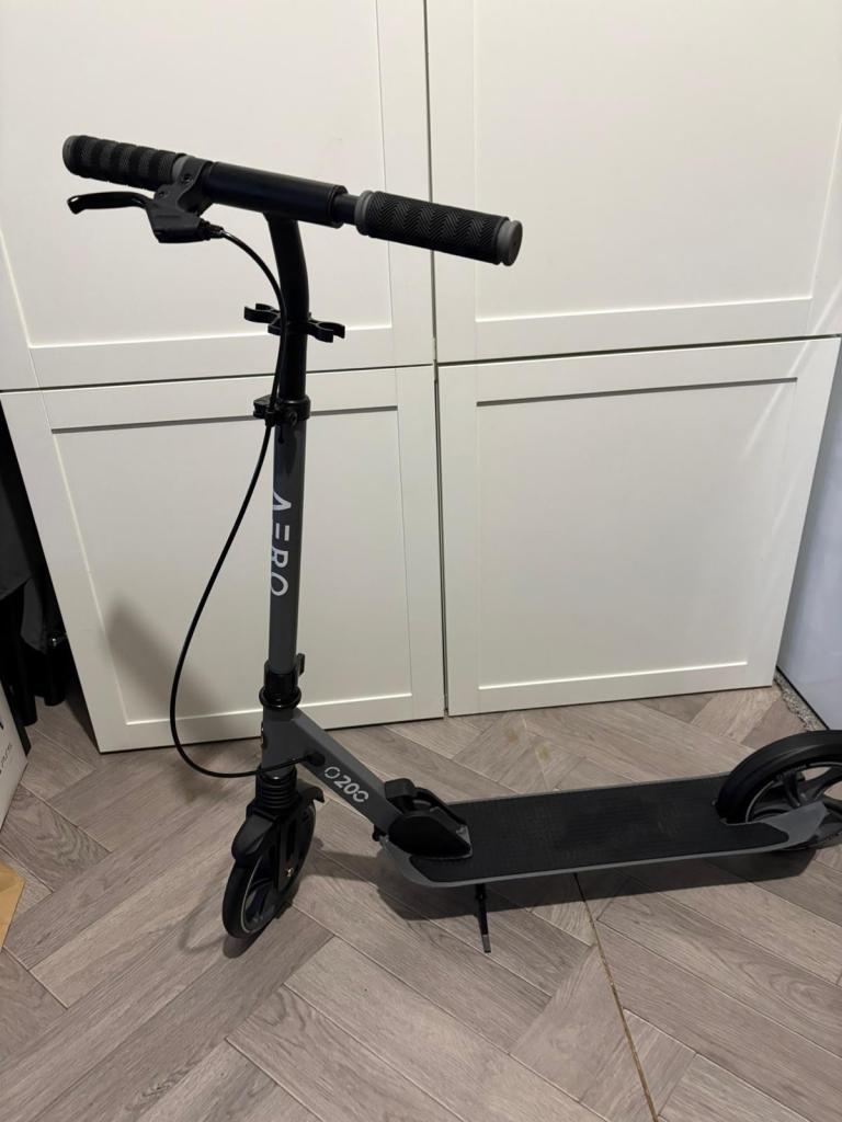 The Aero A200 Folding Scooter has a durable aluminium-alloy frame with a compact fold for easy travel and storage, height-adjustable from 93.5 to 104cm. Featuring a super wide deck, large 200mm wheels and an anti-slip soft mat, the Aero A200 is ideal