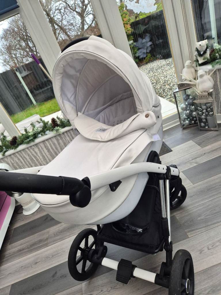 Good condition white bling pram Was bought from PRAM CENTRE White fur and Grey fur for edge of hood This pram was kept at grannys house and wasnt used that much It has been stored in box but its time to let it go as no more grandchildren :(