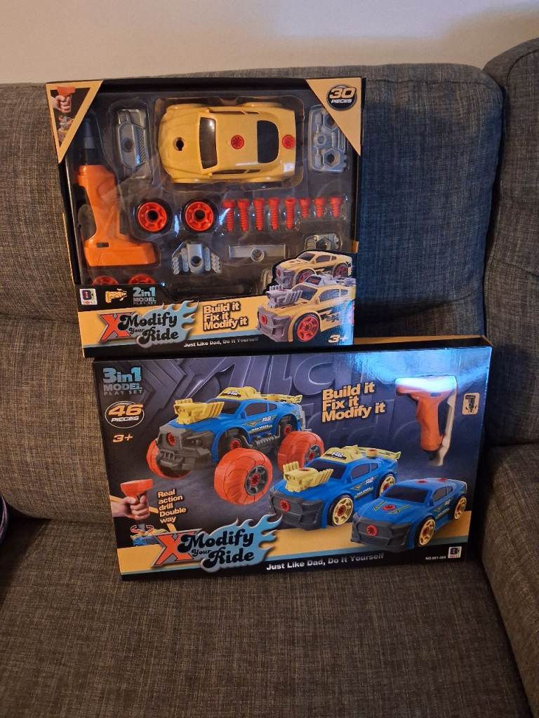Modify your ride car sets. Build it, fix it , Modify it. Brand new still in box £10 for the two Collection only