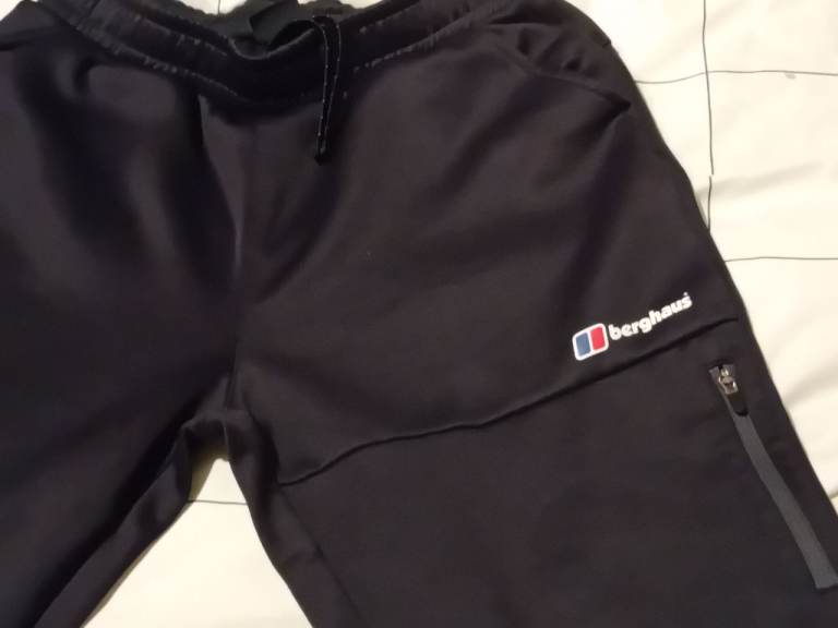 Like new black berghouse boys silky tracksuit bottoms with cuffs at bottom and zip pocket in leg worn once buyer must COLLECT