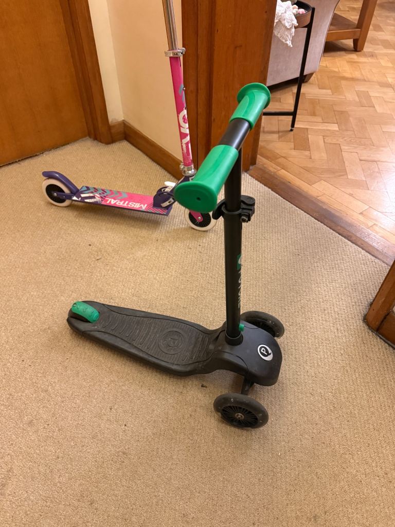 This handy to store scooter has three wheels. My son has outgrown it and wants to sell