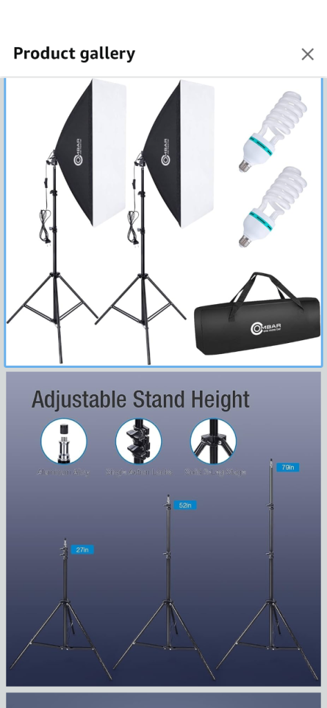 Near new photography equipment. Cost around £75 looking for £25. Below is original listing details: OMBAR Softbox Set Photo Studio 50 x 70 cm, Professional Photography with 2 x 135 W 5500 K E27 Daylight Lamp and Carry Bag for Studio Portraits,