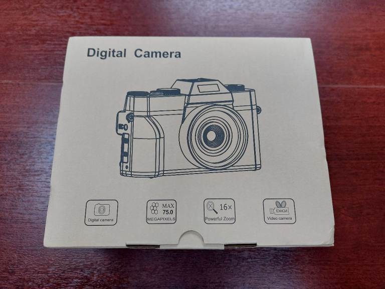 This item is brand new and boxed. The box has been opened but the camera has never been used (unwanted gift). It has a 9 function rotary dial: 1. Single photo 2. Auto cycle 3. Timed 4. Burst 5. Video 6. Slow motion 7. Time lapse 8. Loop reco