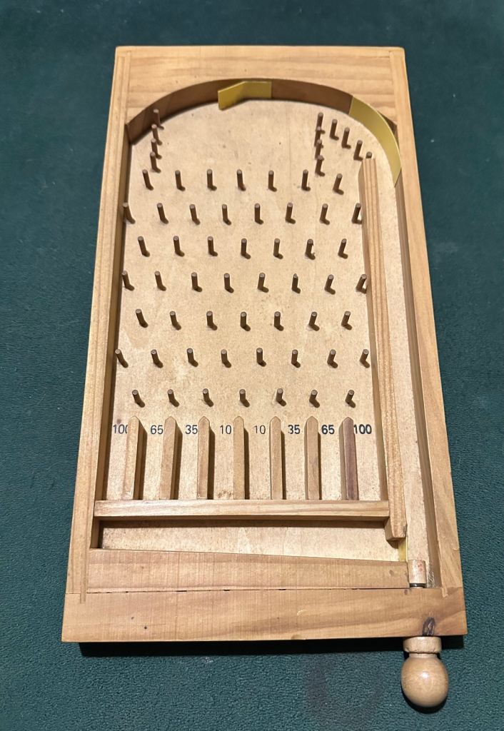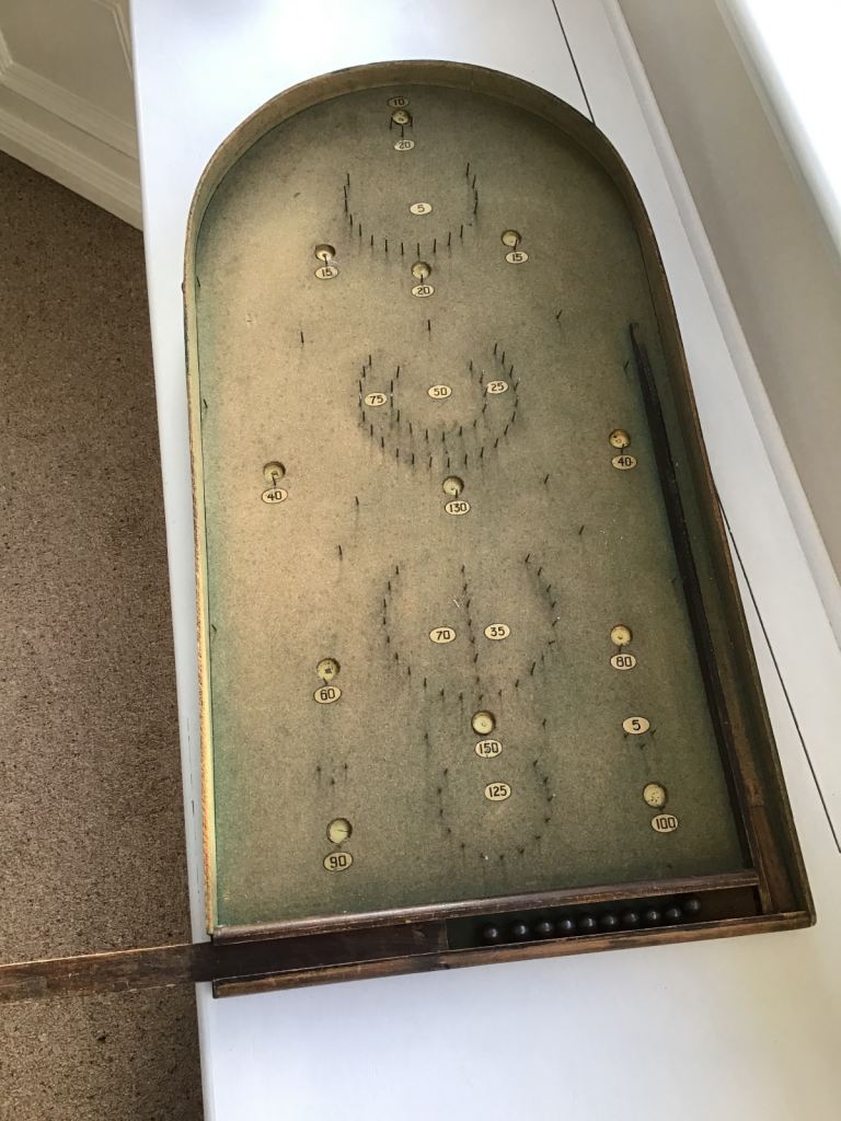 Small Bagatelle Pinball Board Game *Reduced to clear* Purchased this well over 20 years ago at a craft fair. Very well made and working exactly as it should. Original condition and complete with a large pot of stainless steel ball bearings.