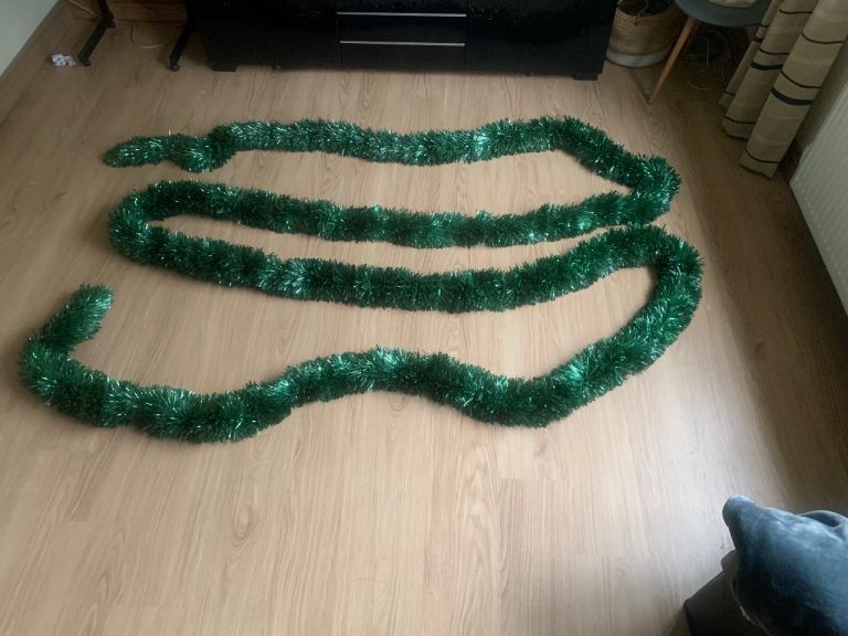 10 METERS OF COMMERCIAL GRADE SPARKLY GREEN TINSEL VERY THICK AND PLUSH