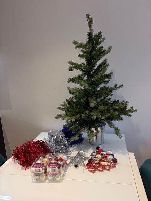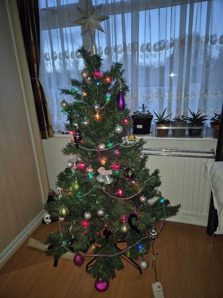 5ft Pine Christmas Tree with lights and baubles sturdy metal stand in very good condition. Cash on collection.