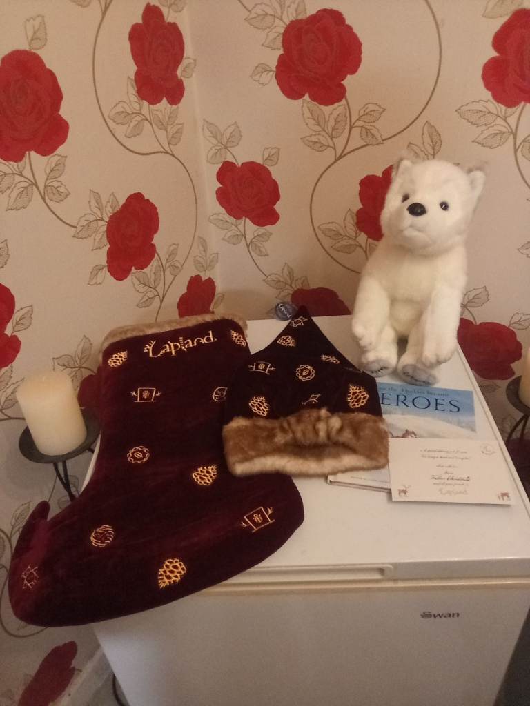 Brand new item in perfect condition with no marks or rips on the item aswell and the item has never been used and still in it's plastic wrapper.all of the items have there tags on.husky dog £30 separate, Christmas stocking £30 separate,story book £12