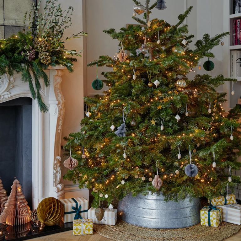 John Lewis Christmas Tree Skirt Galvanised Silver Brand New unused Size- Large Measurements Top- 18.5 inches Bottom- 23 inches Height- 11 inches