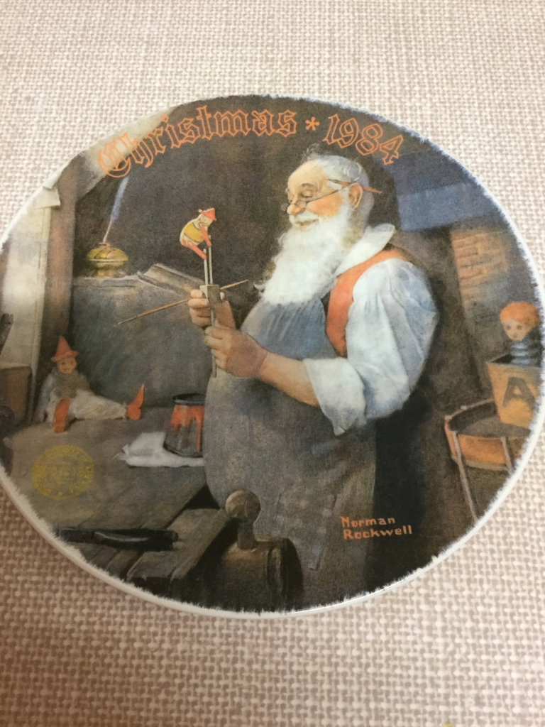 Norman Rockwell's Santa in His Workshop 1984 Christmas Plate in perfect condition. This limited edition plate is 8.25” and crafted in in fine china by Edwin M. Knowles Company of North America. A joyful plate that would make a perfect gift, espec